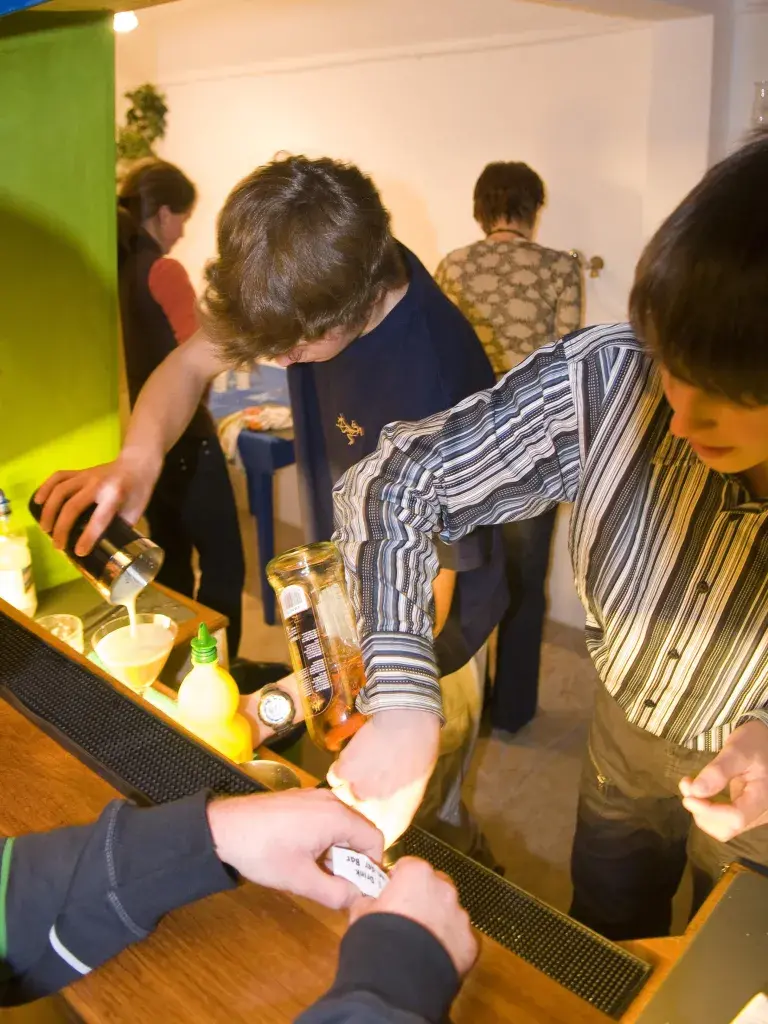 Ab 19 Uhr sind die Türen für Junge und Junggebliebene geöffnet. An der Bar kann man sich mit leckeren, alkoholfreien Drinks, Hot Dogs und Snacks eindecken.
